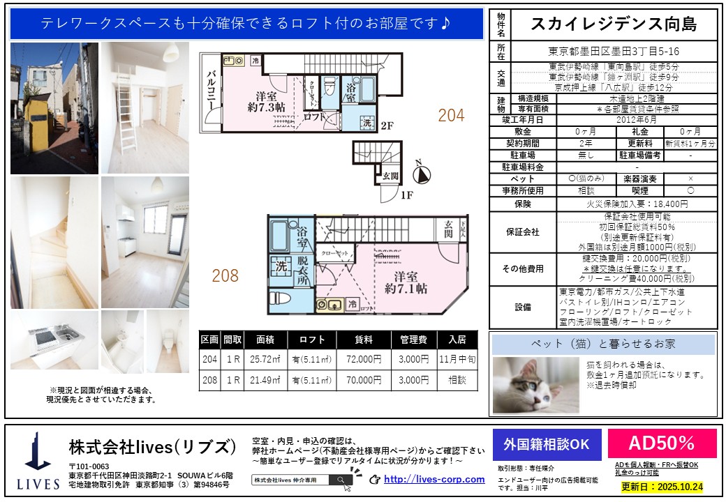 スカイレジデンス向島204・208募集図面